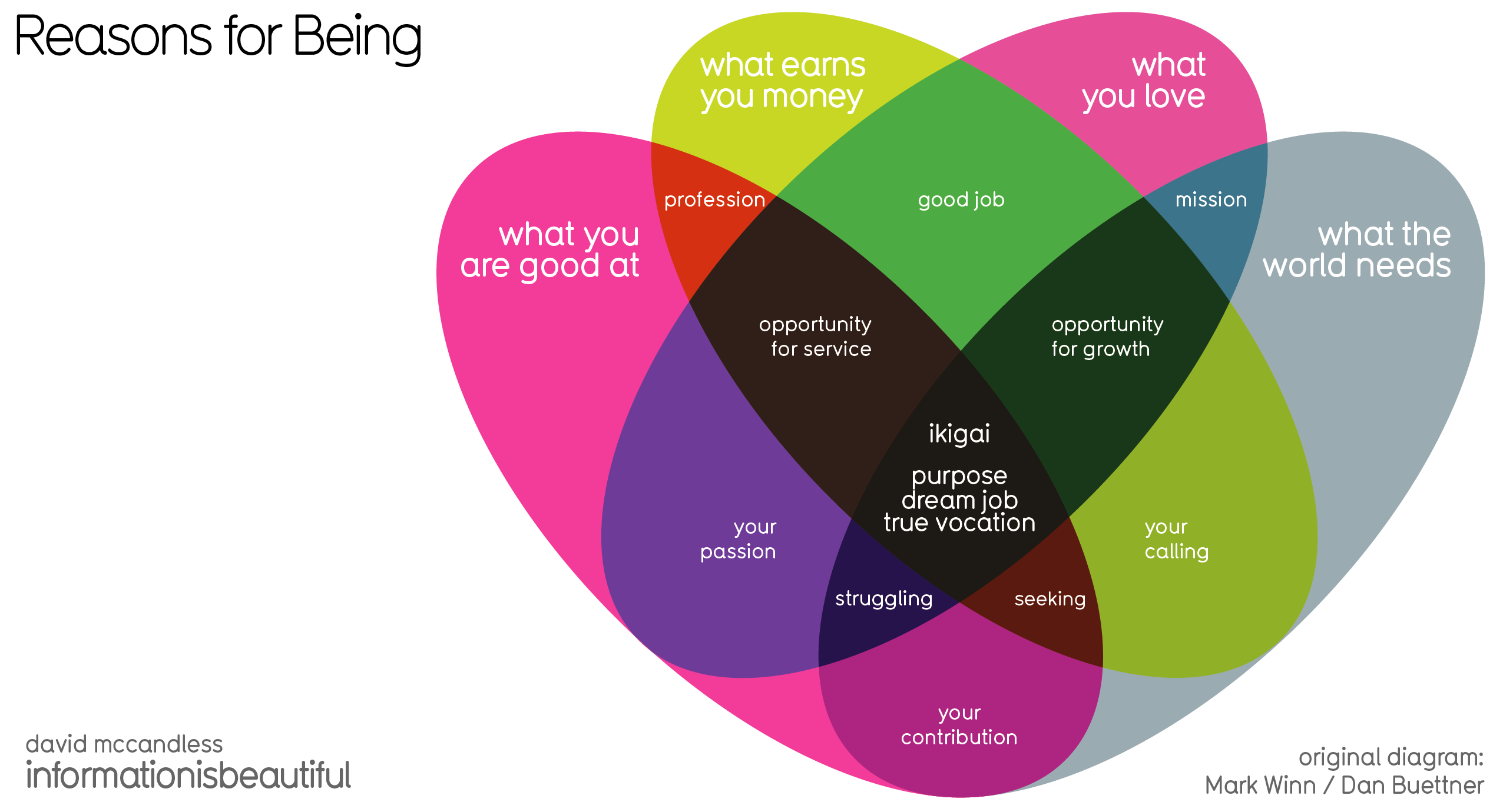 your identity, strengths, the needs of the world, and your own possibilities to