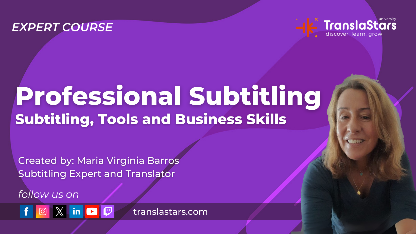 Turn your AVT expertise into a sustainable career. The Professional Subtitling course by Maria Virgínia Barros connects technical skill with professional practice, teaching you not just how to create high-quality subtitles, but how to position yourself in today's competitive market.