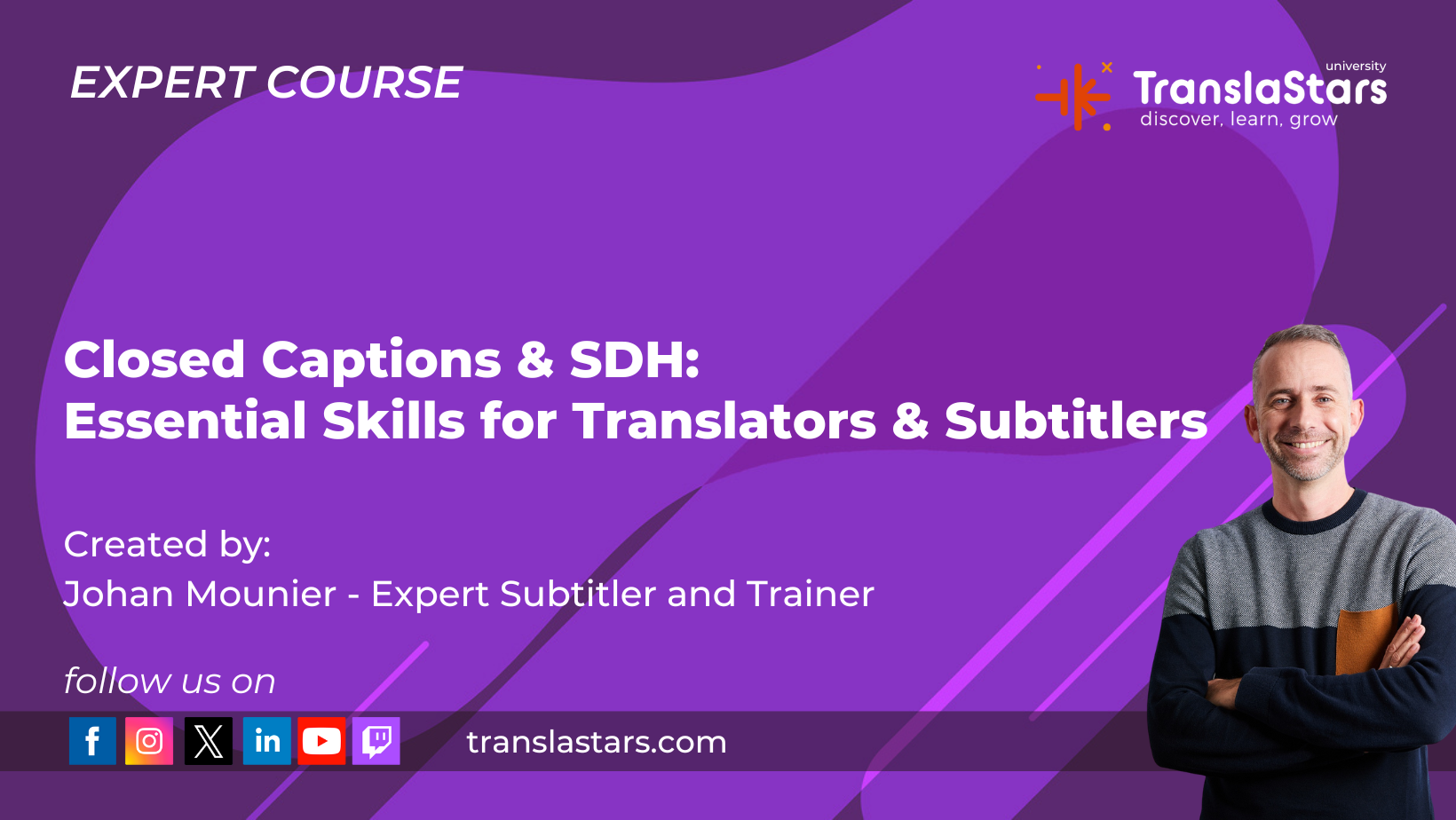 Understand what SDH really involves, learn how it differs from subtitling and closed captions, and discover what's needed to succeed in accessible, inclusive subtitling with Johan Mounier's course Closed Captions & SDH: Essential Skills for Translators & Subtitlers.