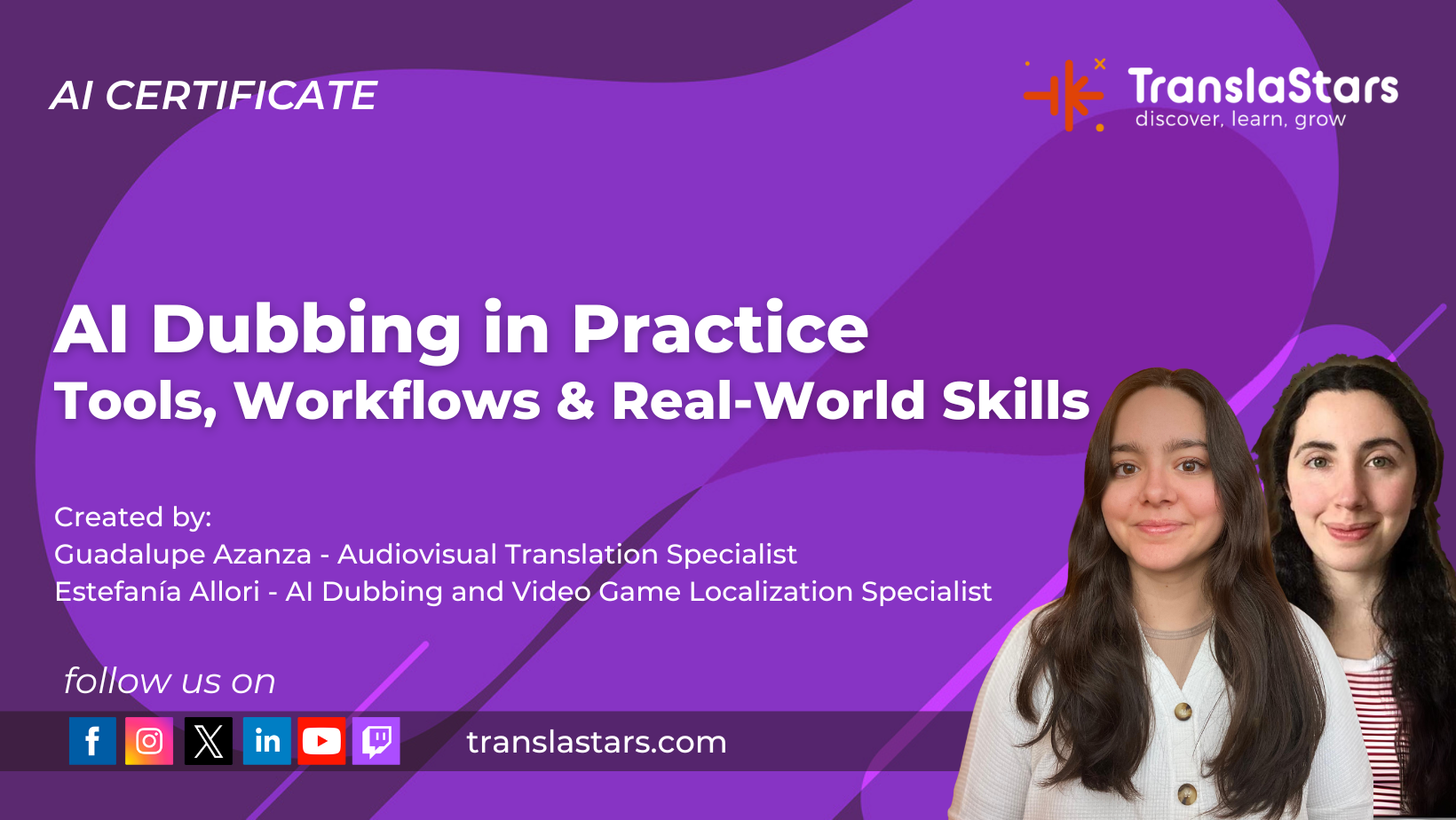 programs combining AI and AVT are becoming so relevant. One of them is without any doubt our AI Certificate, AI Dubbing in Practice: Tools, Workflows & Real-World Skills by Guadalupe Azanza, who is sharing her invaluable tips with us, and Estefanía Allori.